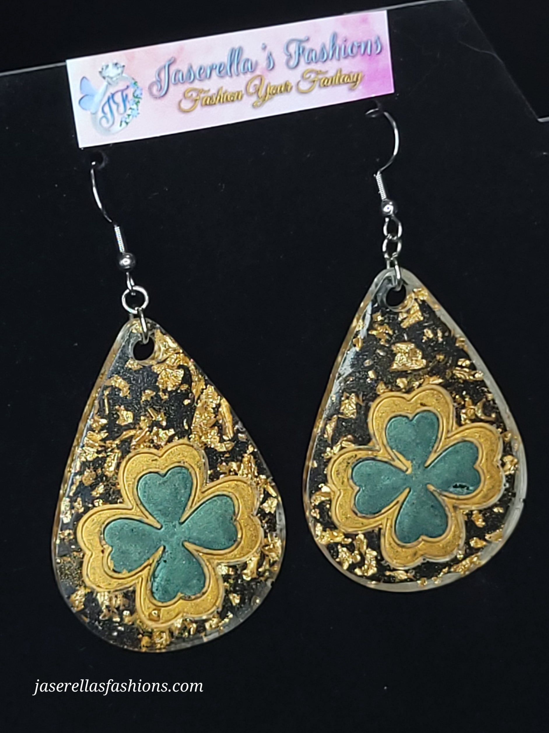 Add a touch of luck to your outfit with our 4 Leaf Clover Teardrop Earrings. Made with resin and stainless steel hooks, these earrings are ideal for commemorating Irish culture. . Lightweight and eye-catching, they are a must-have for any jewelry collection.