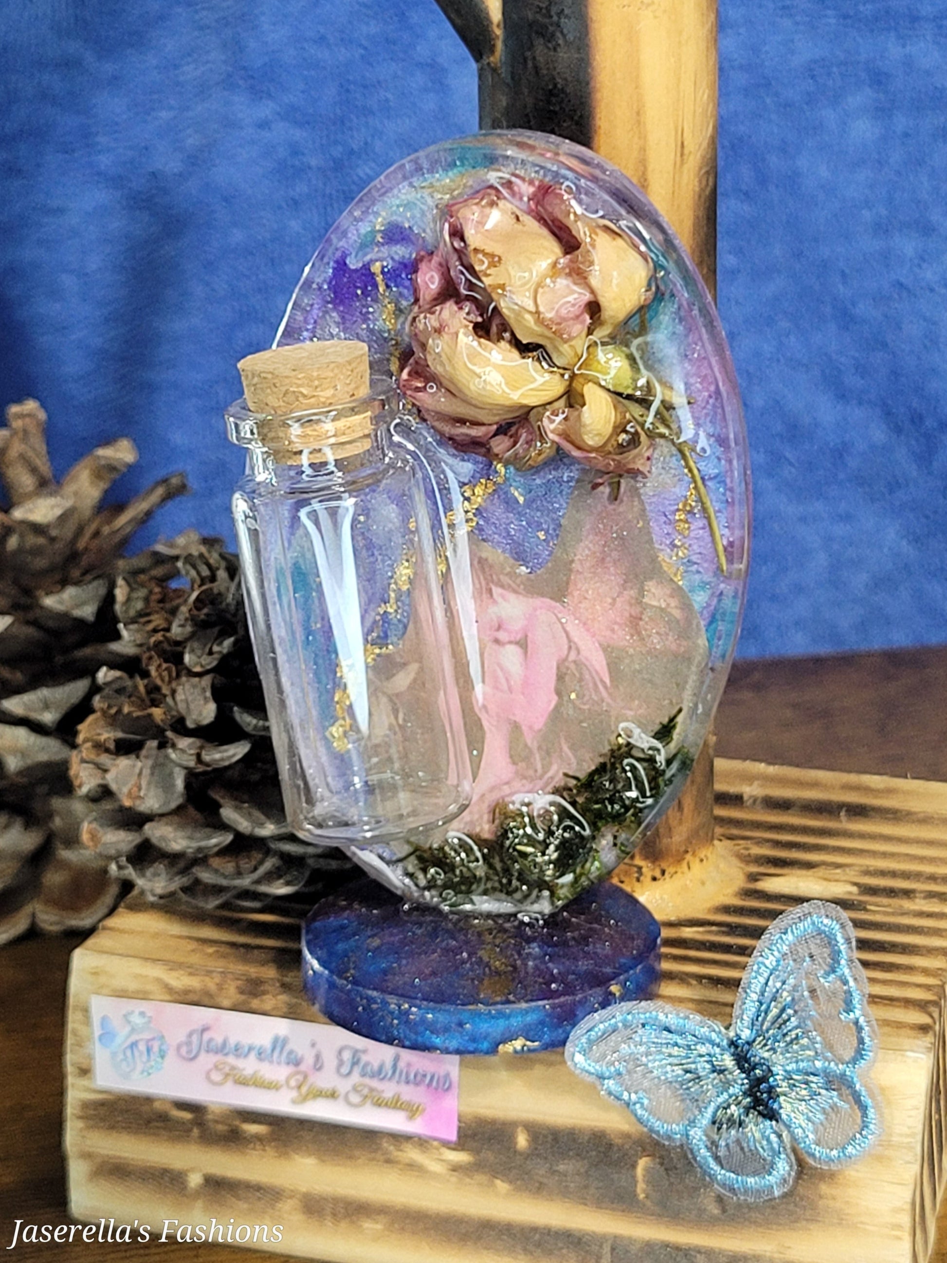 The Plaque of Curiosities is a unique and exclusive Jaserella's original. Made with the highest level of craftsmanship, this plaque offers a one of a kind showcase for your prized possessions. Display your curiosities with pride and let this plaque add a touch of elegance and sophistication to your collection. Each plaque comes with a 20ml glass jar that can be filled with any substance of your choice.